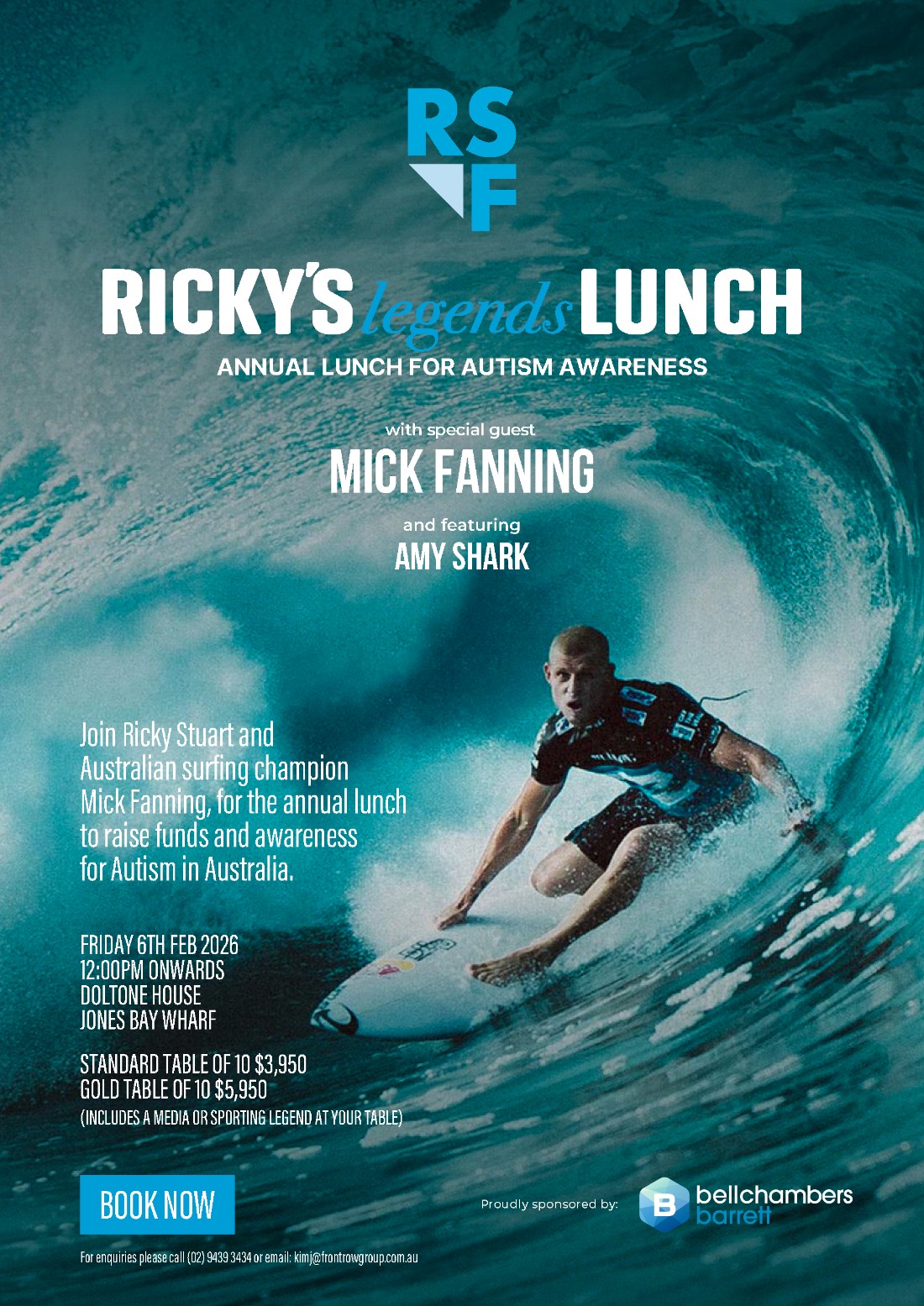 Your attendance will directly support raising funds and awareness for autism in Australia, helping the Ricky Stuart Foundation continue its essential work.